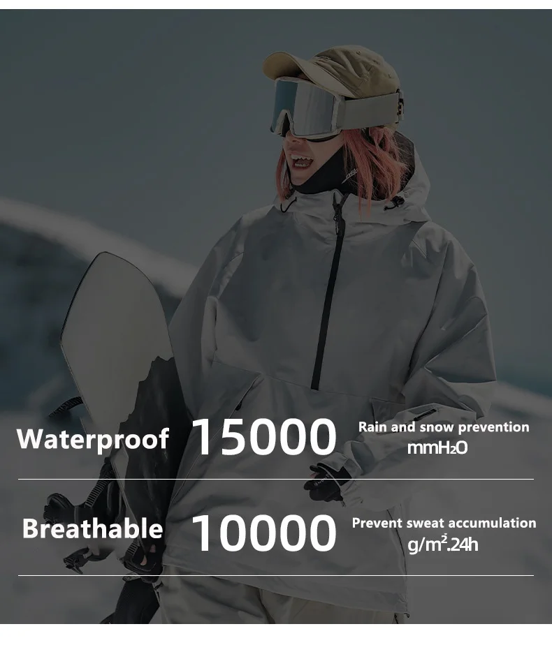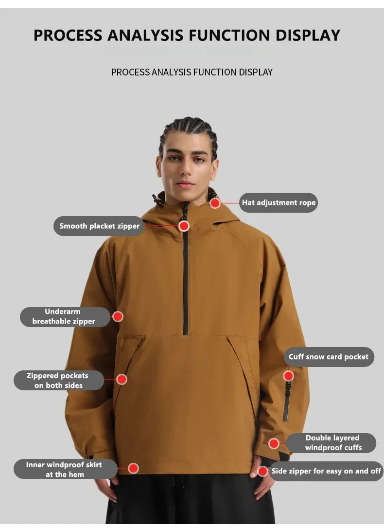 新款滑雪服男连帽套头宽松单板防风防水透气情侣专业美式滑雪服女