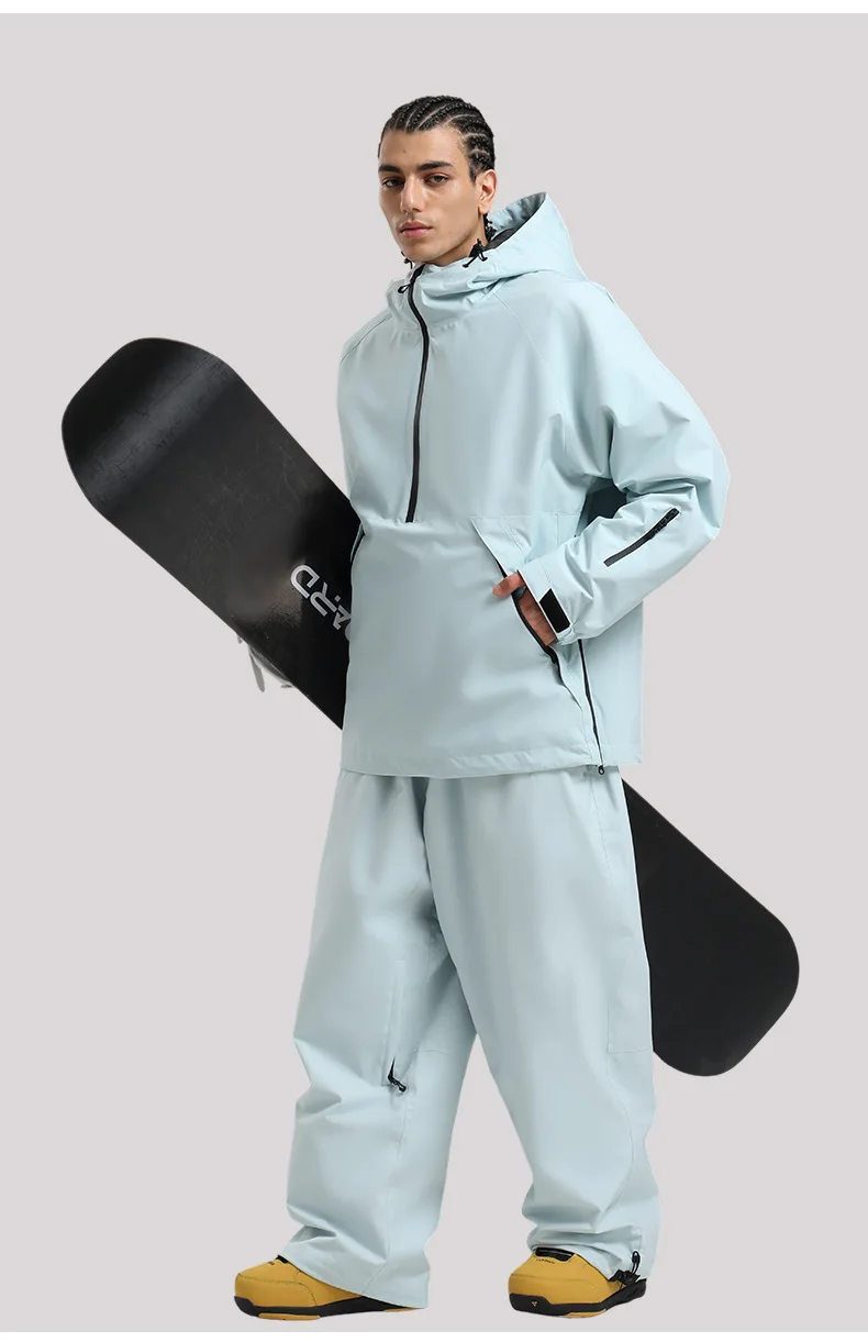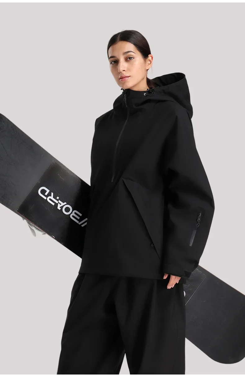 新款滑雪服男连帽套头宽松单板防风防水透气情侣专业美式滑雪服女