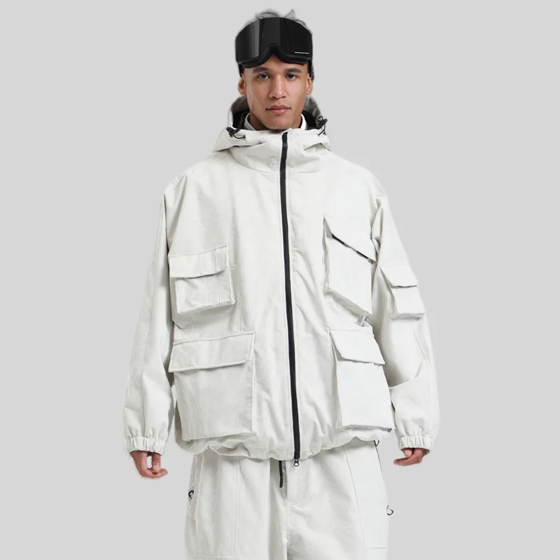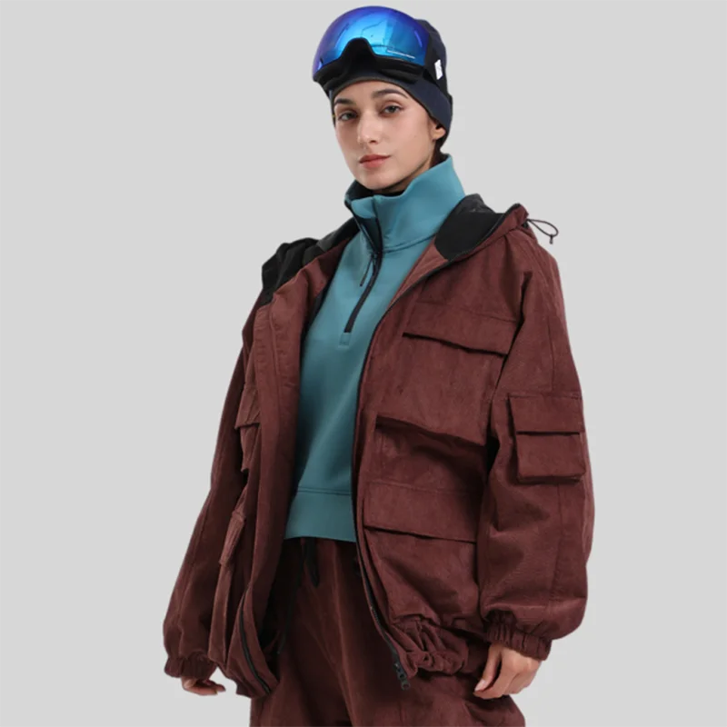 新款冬季滑雪服男上衣宽松单板防风防水工装多口袋连帽滑雪服女款