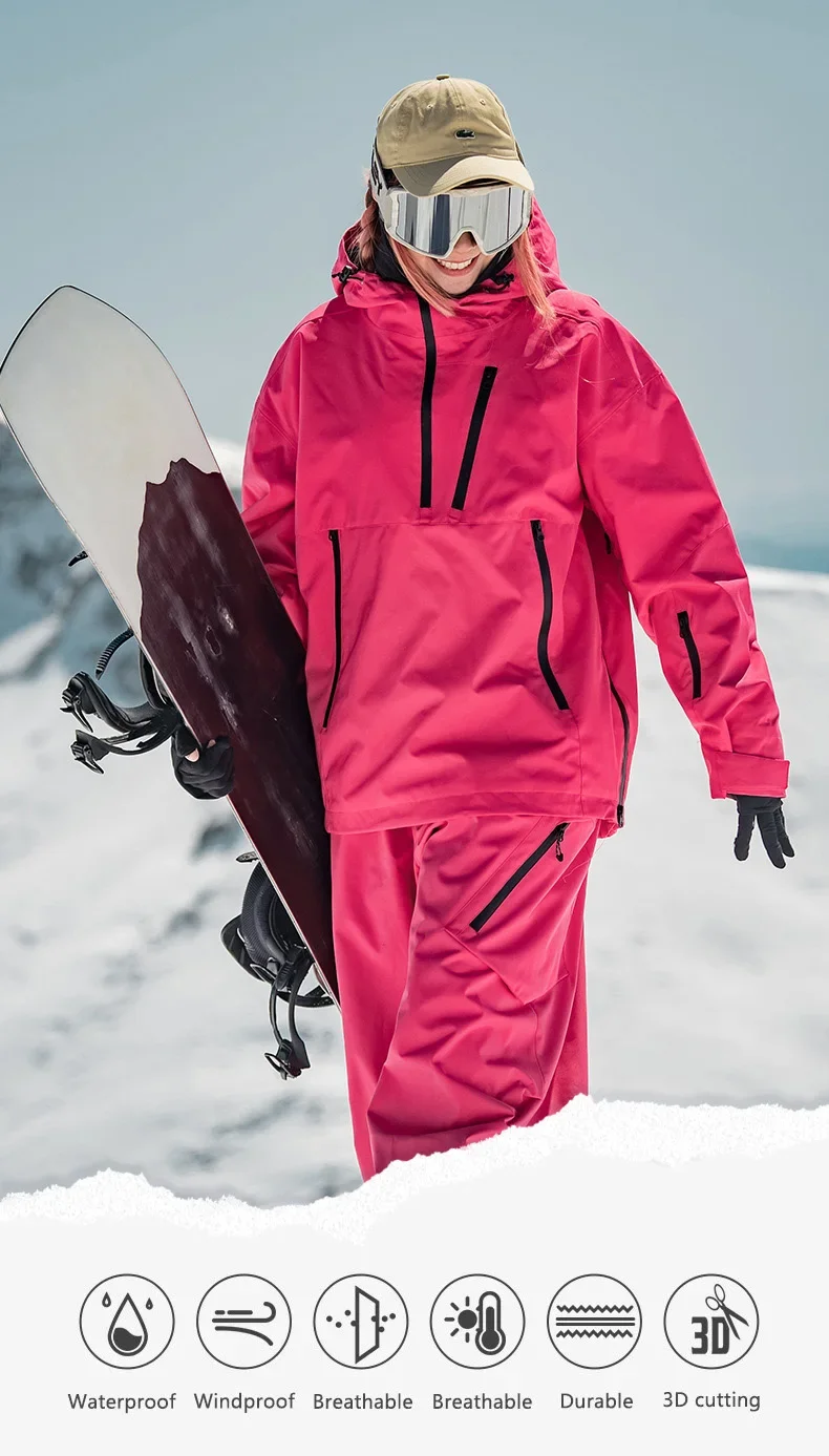 滑雪服女士新款单板套头工装防风防水透气宽松美式专业滑雪服上衣