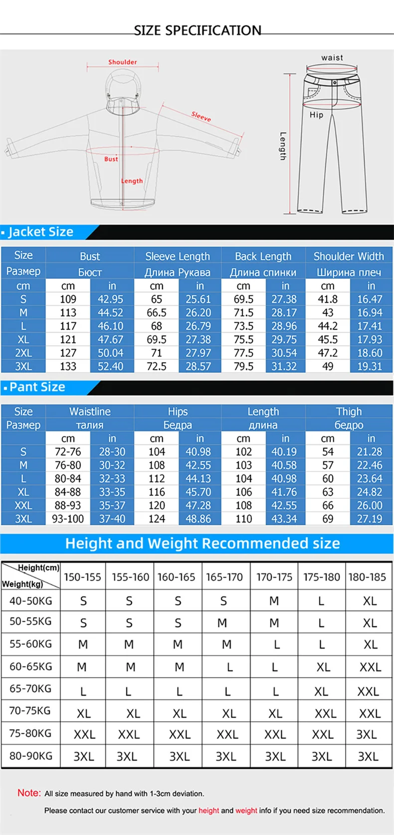 Note: If you want jackets and trousers to be different sizes, please leave a message when placing your order.